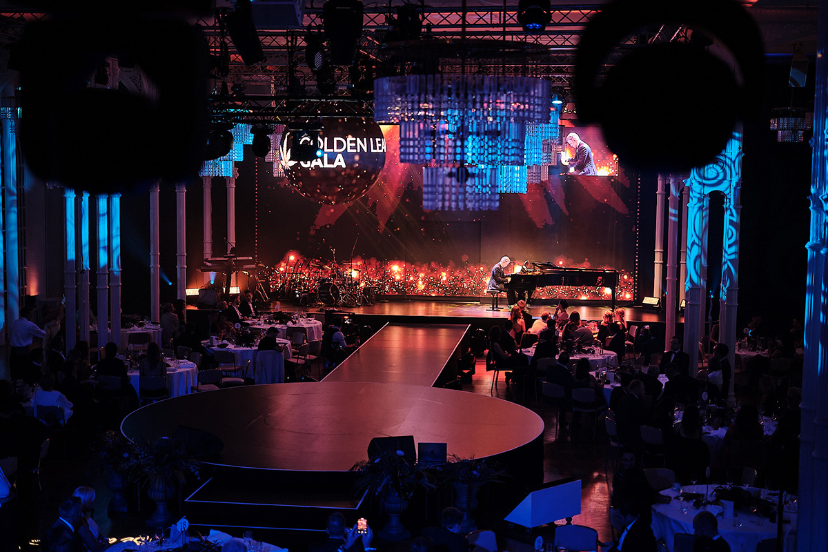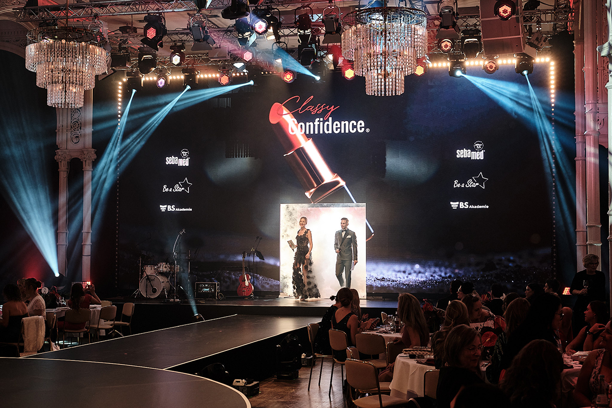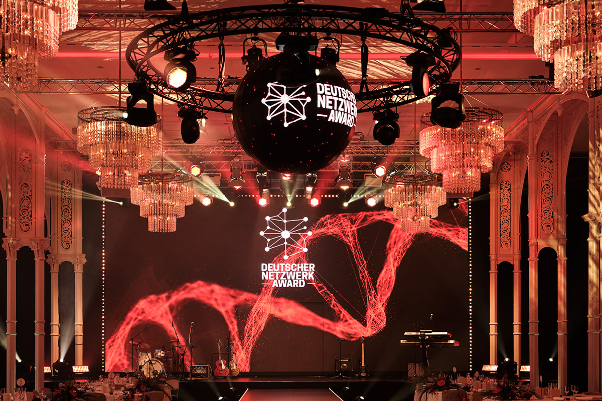 Im Mittelpunkt stand eine beeindruckende LED-Kugel, ergänzt durch eine imposante LED-Wand, deren mittlerer Bereich fahrbar konstruiert war. So konnte in der Wand ein Bühnen-Durchgang geöffnet werden, etwa für Showacts oder sonstige Auftritte und ermöglichte so einen glamourösen Auftritt der Protagonisten. Mit individuell angepasstem Content, Lichtdesign und Farbwelten entstand aus demselben Set jedes Mal ein völlig neues Eventerlebnis.